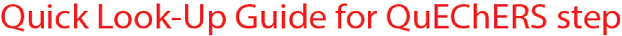 QuEChERS (Quick、Easy、Cheap、Effective、Rugged 及 Safe) 前處理技術, 具有快速、簡單、便宜、有效、耐用及安全等優點。 |