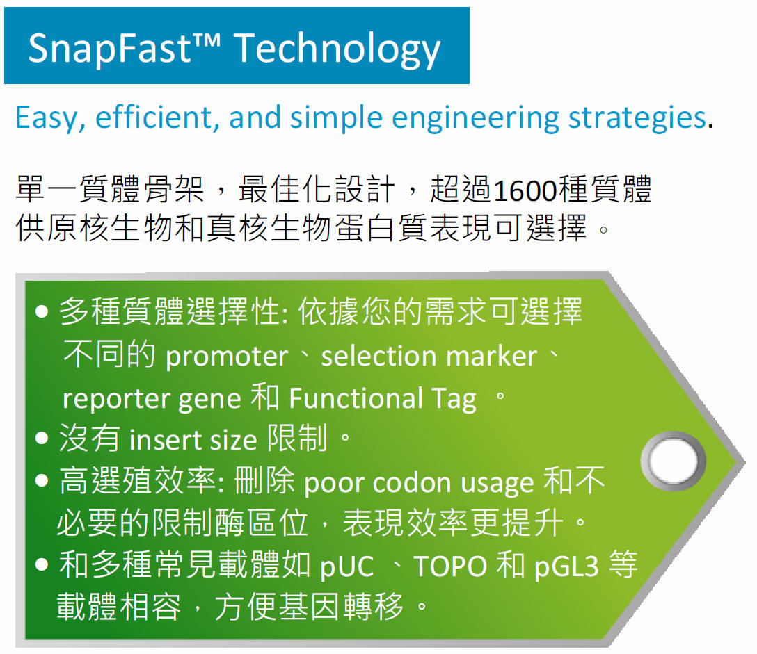 超過1600種的載體更貼近您的需求 SnapFast™ Technology |