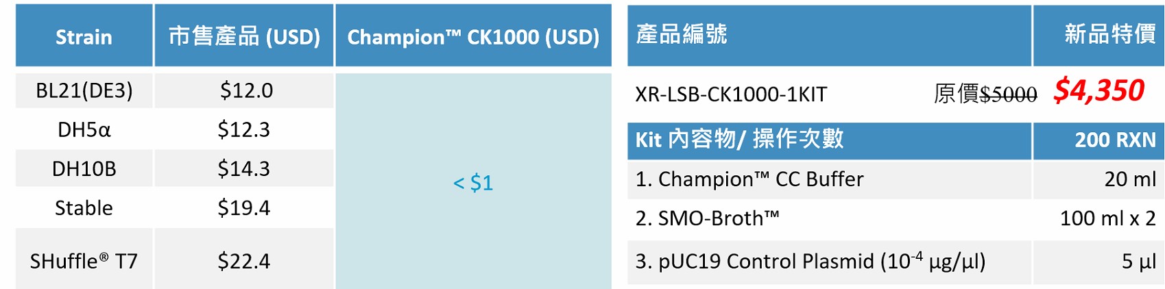 只要10分鐘~製備勝任細胞 超Easy Champion™ E. coli Transformation Kit |