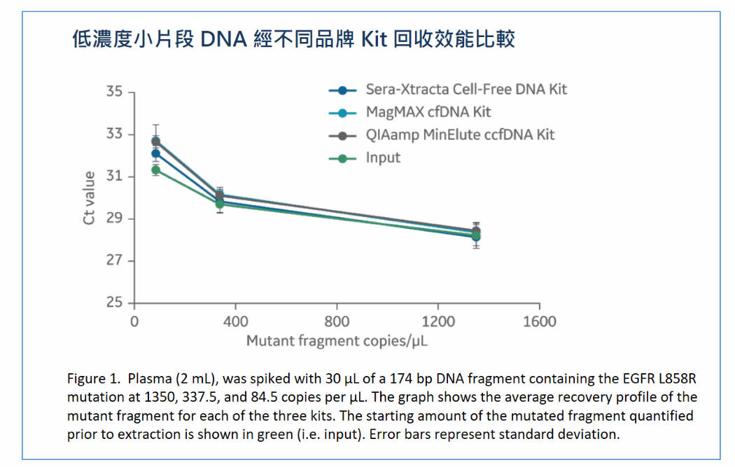 l cfDNA 回收量較高,品質較優 ( 低 genomic DNA 殘留量)